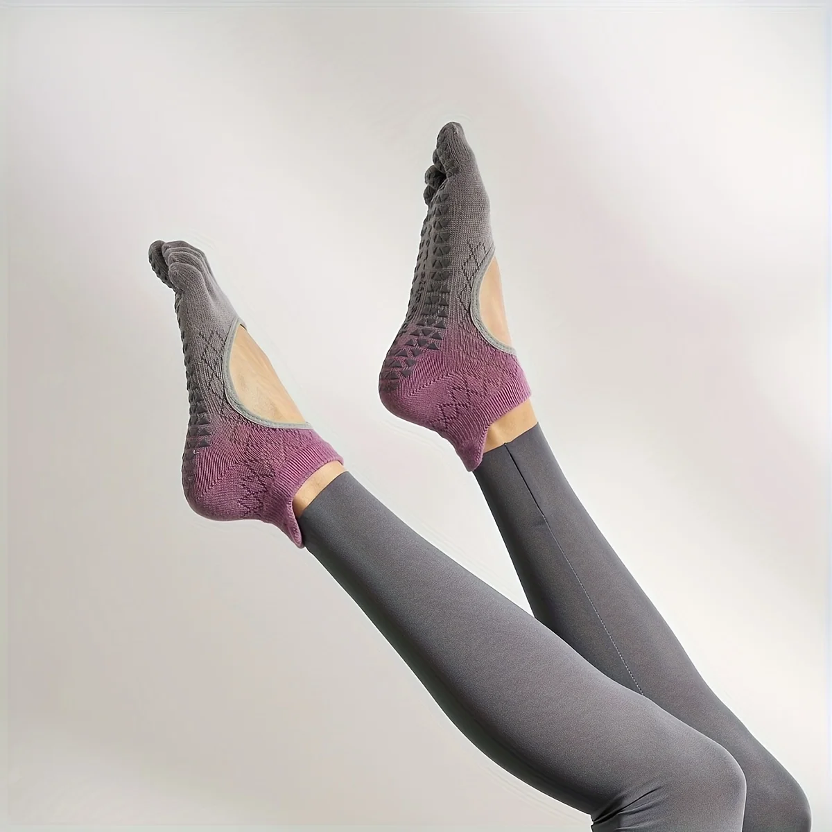 1 Pair Women’s Gradient Non-Slip Yoga Socks, Full Finger Design, Breathable Mesh Pilates, Dance Socks