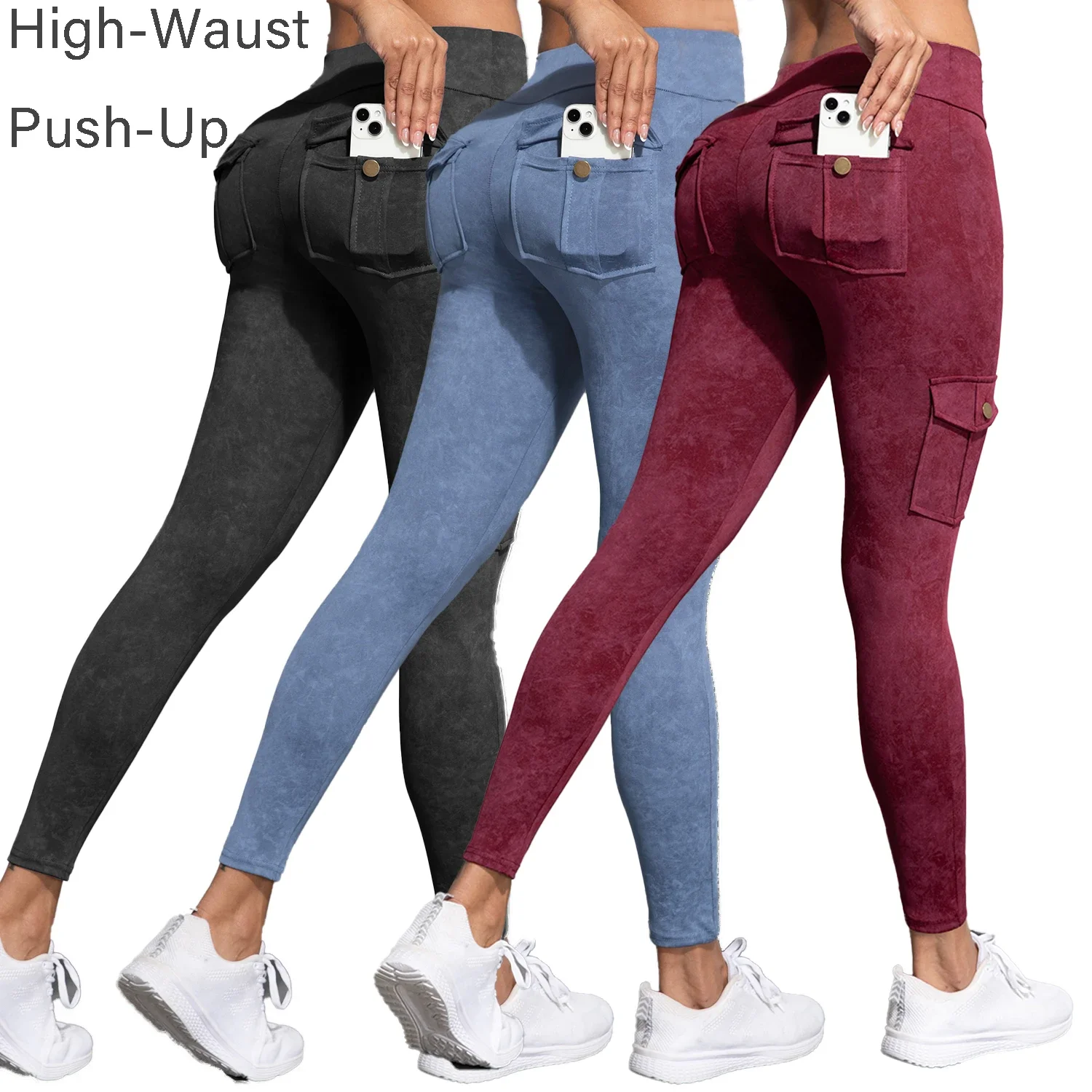 2025 New Styles Pockets Soild Color Seam Women's Leggings Casual Yoga Running Workout Pants High Waist Hip Lifting Leggings