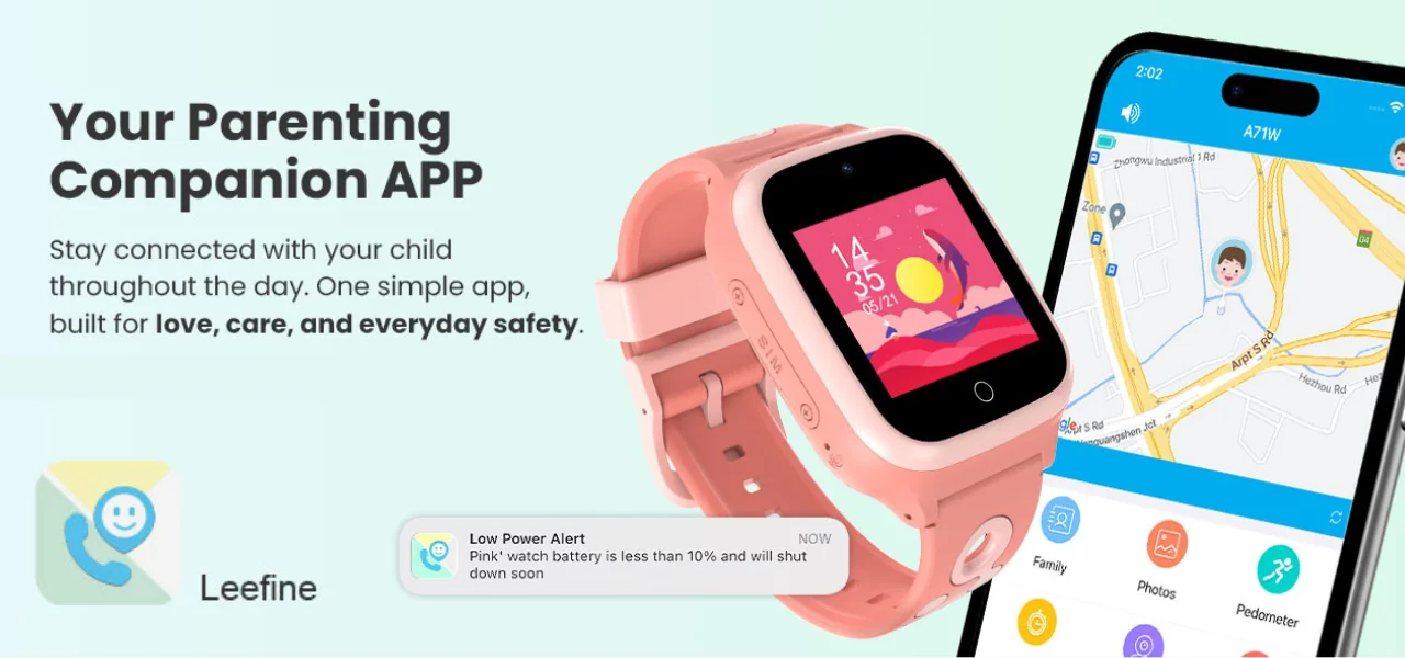 With built-in GPS, parents can remotely view their child's real-time location through the Leefine app, providing peace of mind wherever they are.