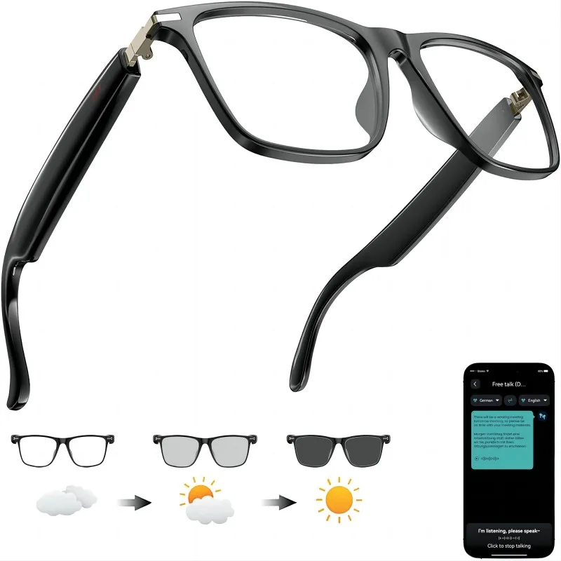AI Translation Smart Glasses with photochromic lenses, support 160+ languages real-time translation