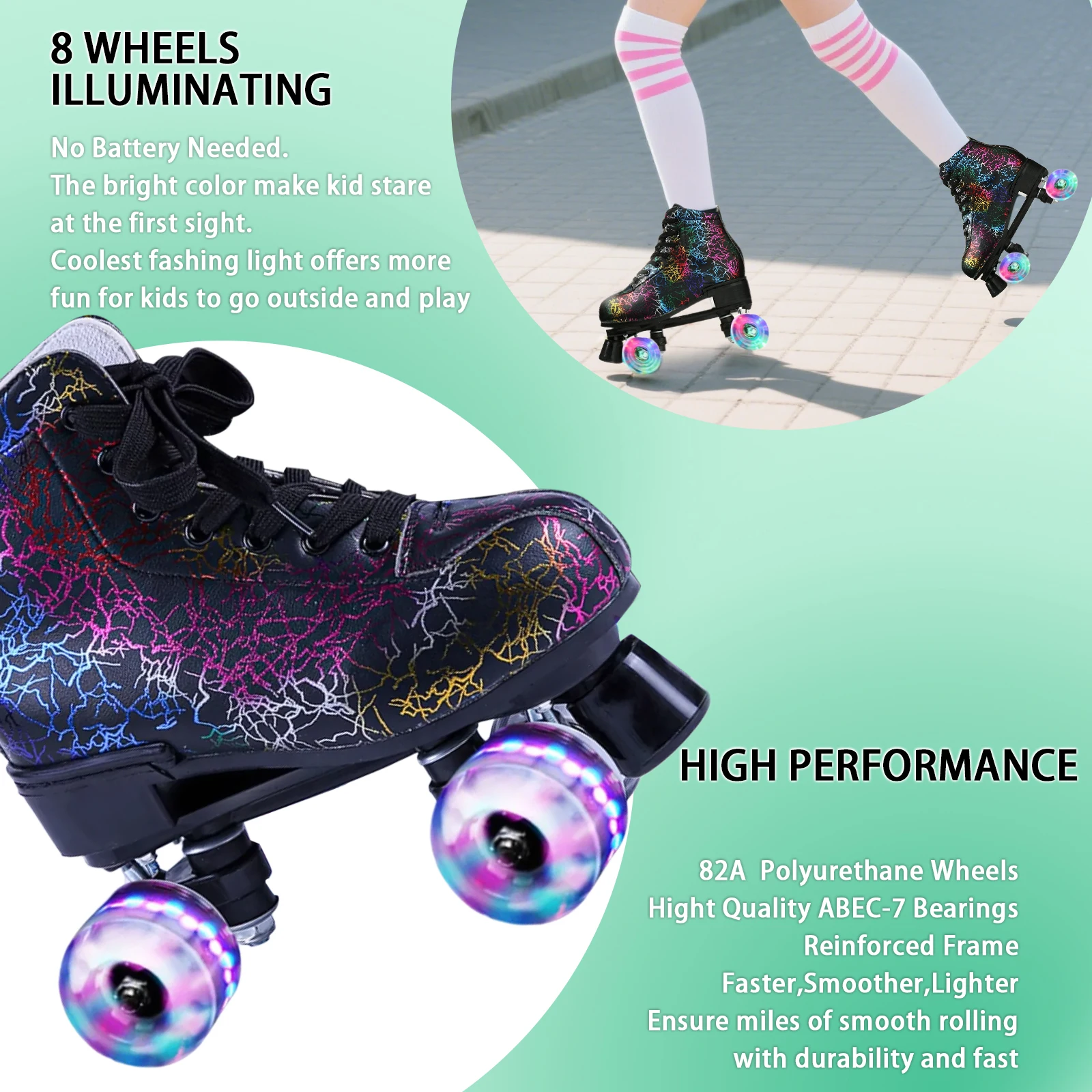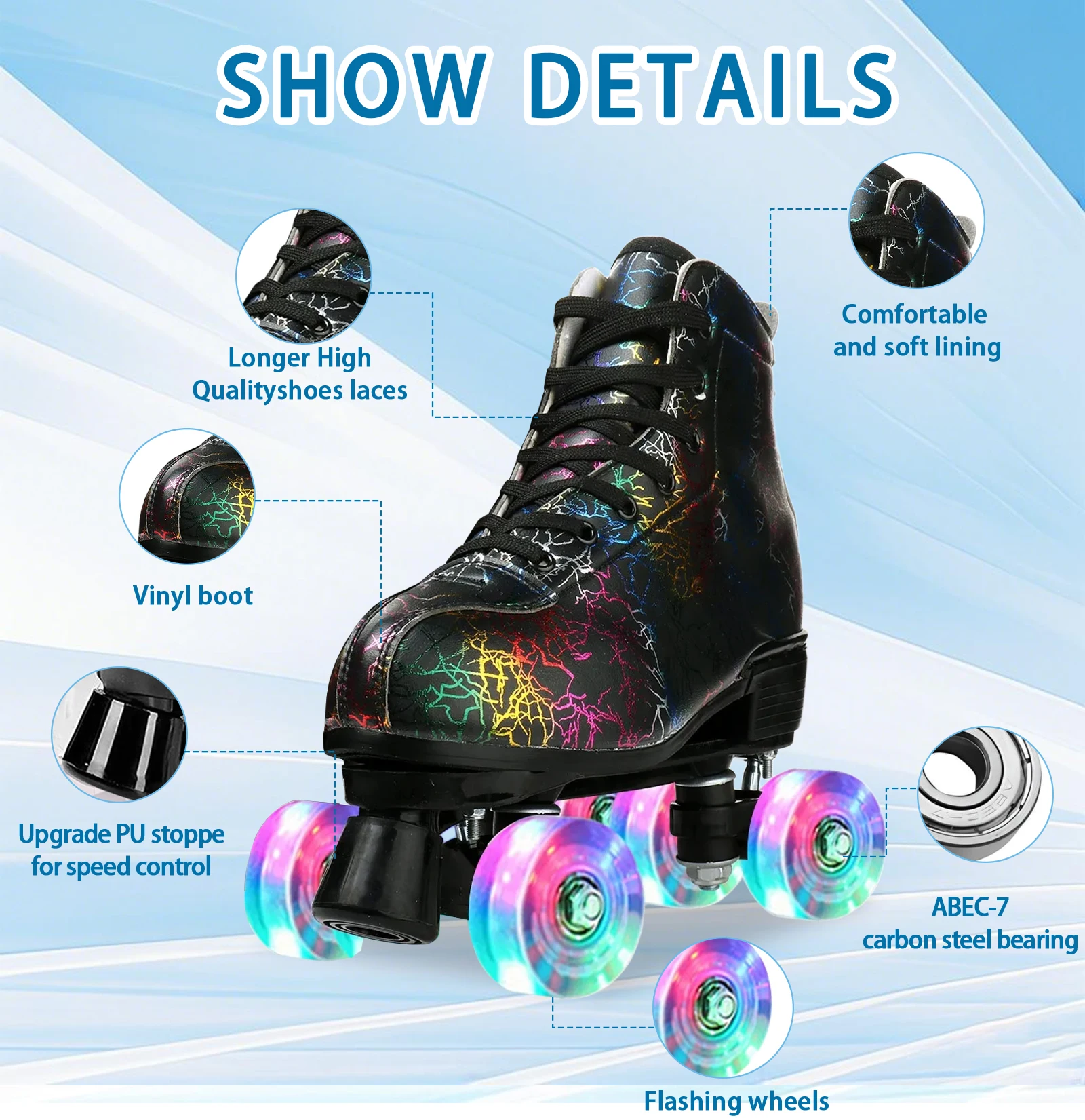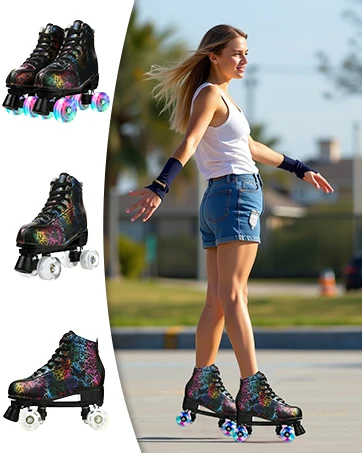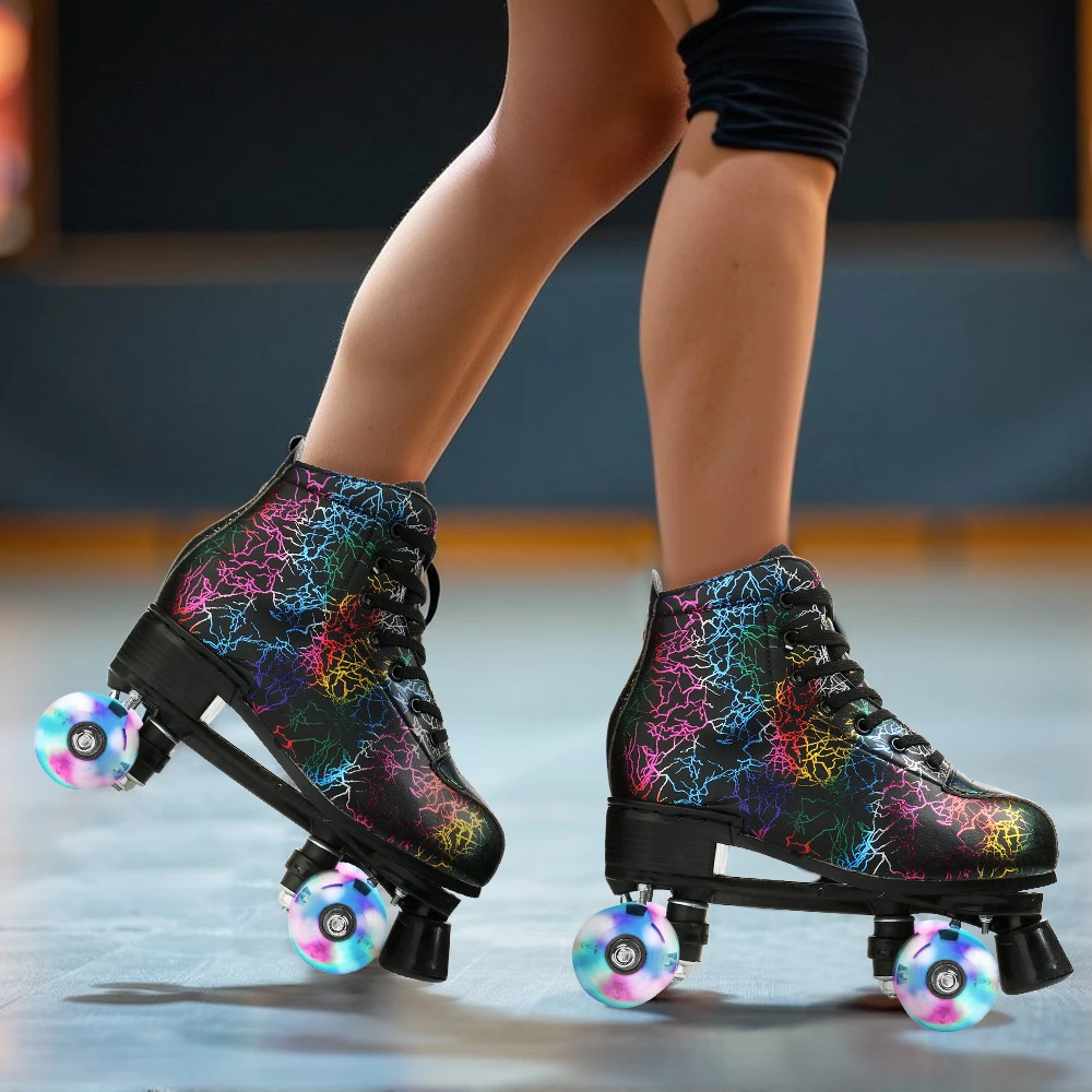 Flashing Quad Roller Skates Adult Flashing 4 Wheels Skates For Women Men Outdoor Sports ice Skating Rink Quad Sneakers
