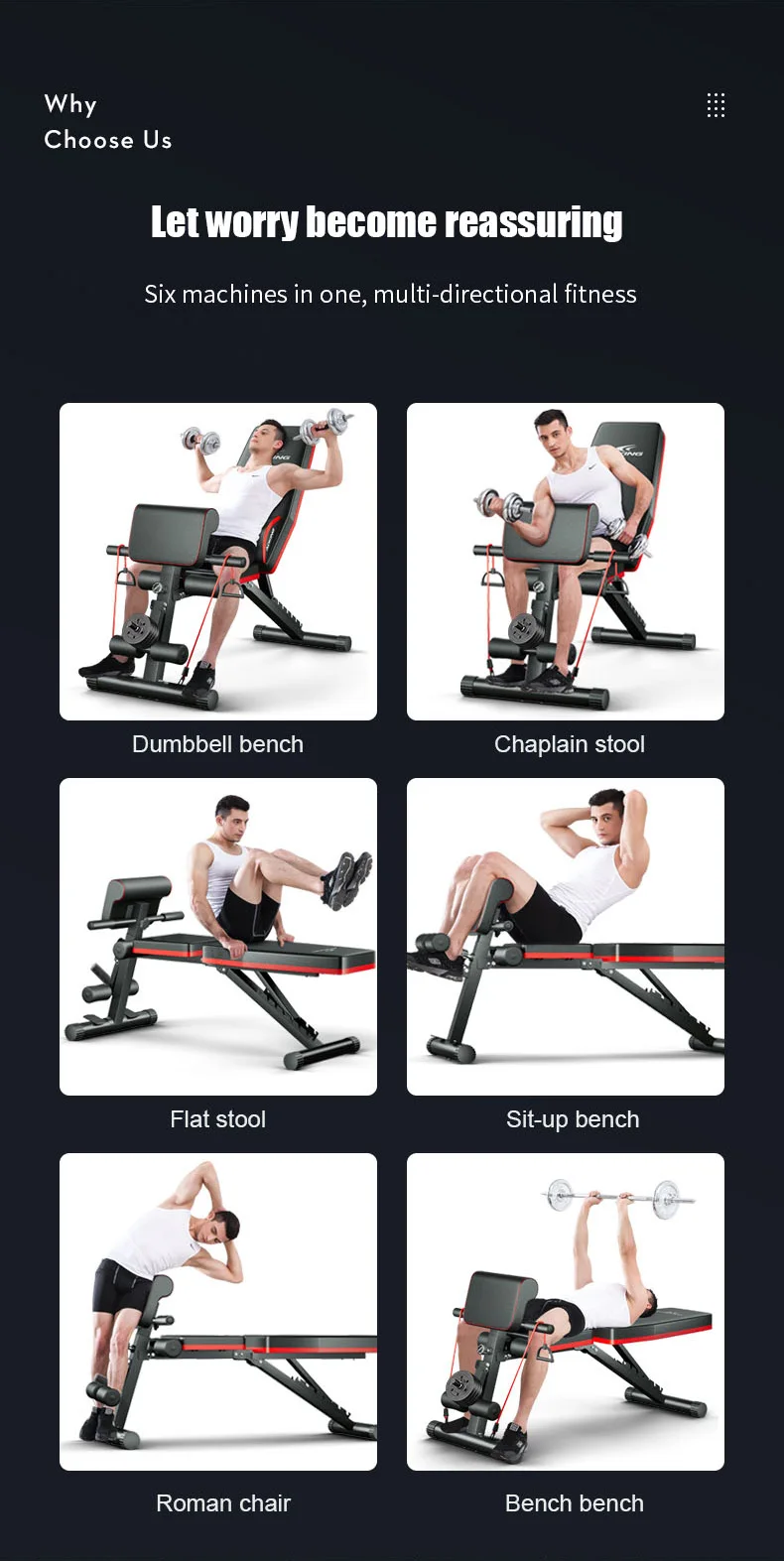 Fully foldable adjustable fitness bench, exercise use fitness dumbbell bench, multi-functional Roman chair, inclined bench
