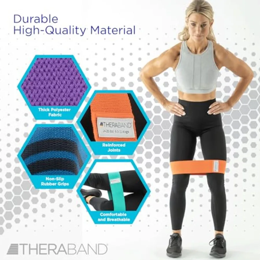Glute Band Loops, Fabric Exercise Bands for Home or Travel, Set of 4 Loop Bands with Increasing Levels of Resistance