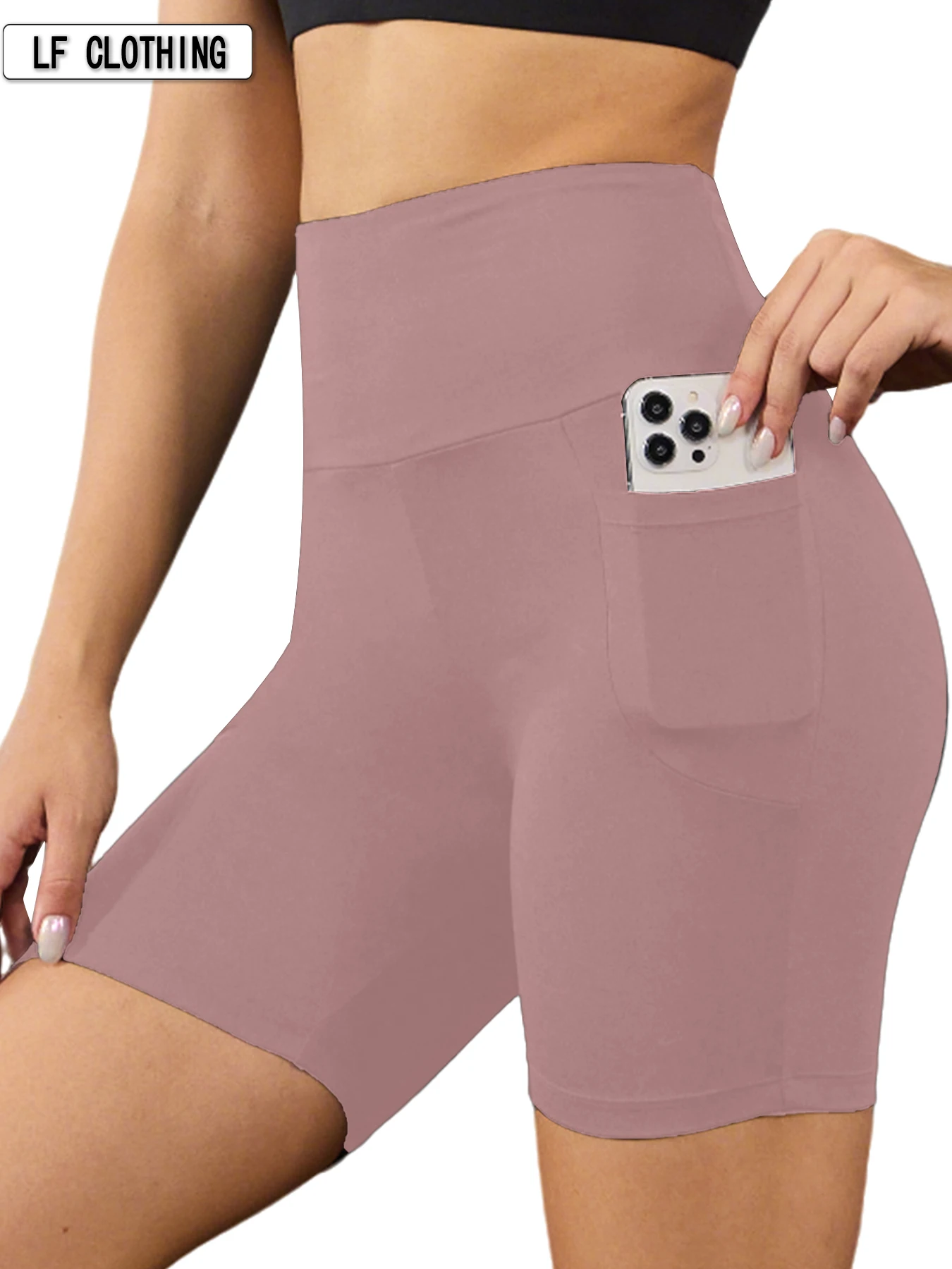 High Waisted Biker Shorts For Women With Pockets No See Through Workout Running Yoga Athletic Shorts Push Up Gym Fitness