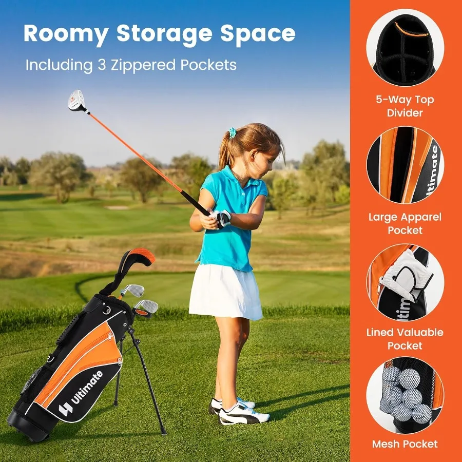 Junior Golf Club Set for Right Hand Includes 3 Fairway Wood 7/9 Irons Putter Head Cover Rain Hood Golf Stand Bag Perfect for '