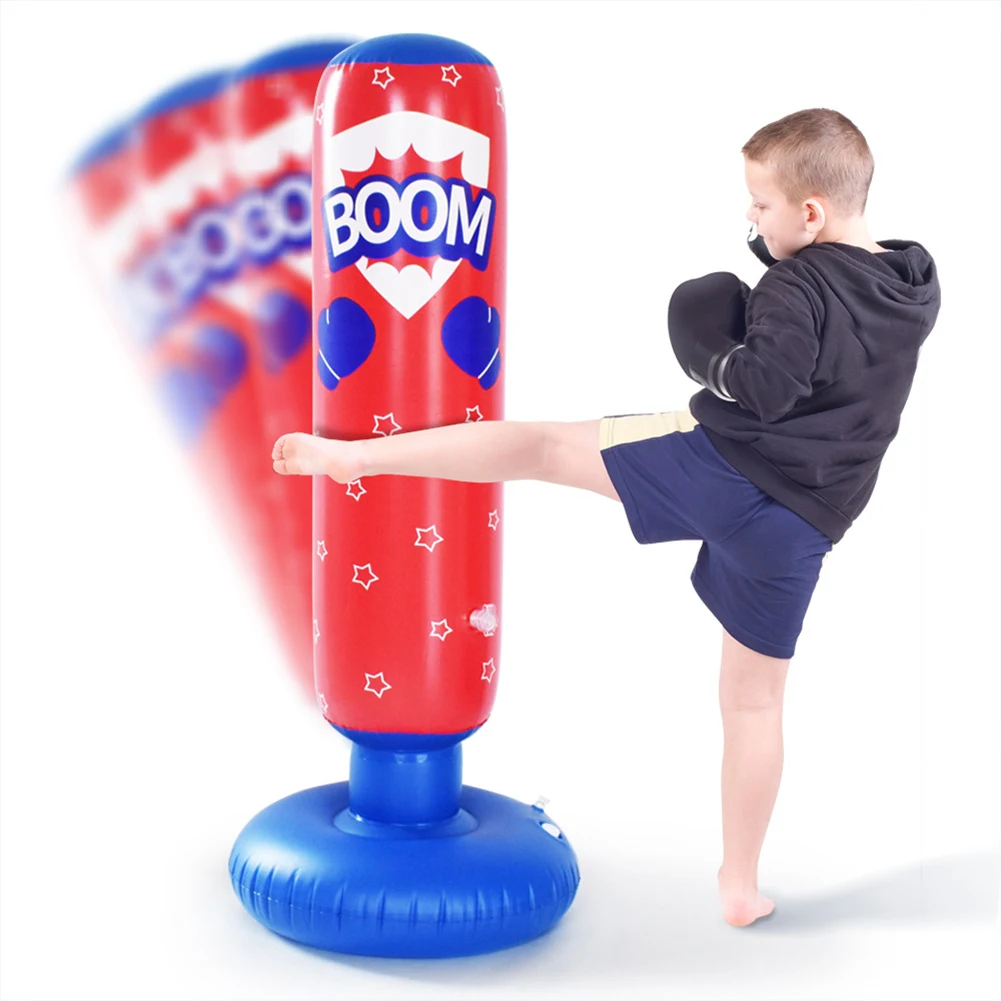 Kids Inflatable Punching Bag Free Standing Boxing Bag Lightweight Tumbler Sandbag Inflation Punching Column for Boxing Training