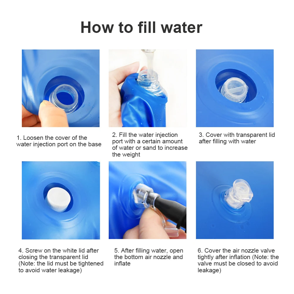 The product packaging is foldable, with a water injection port at the bottom. After receiving the product, customers can inject water at the bottom of the product and use it after inflating.