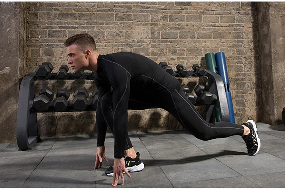 Men Bodybuilding Sport T-shirt Quick Dry Running Shirt Long Sleeve Compression Top Gym T Shirt Men Fitness Tight Rashgard