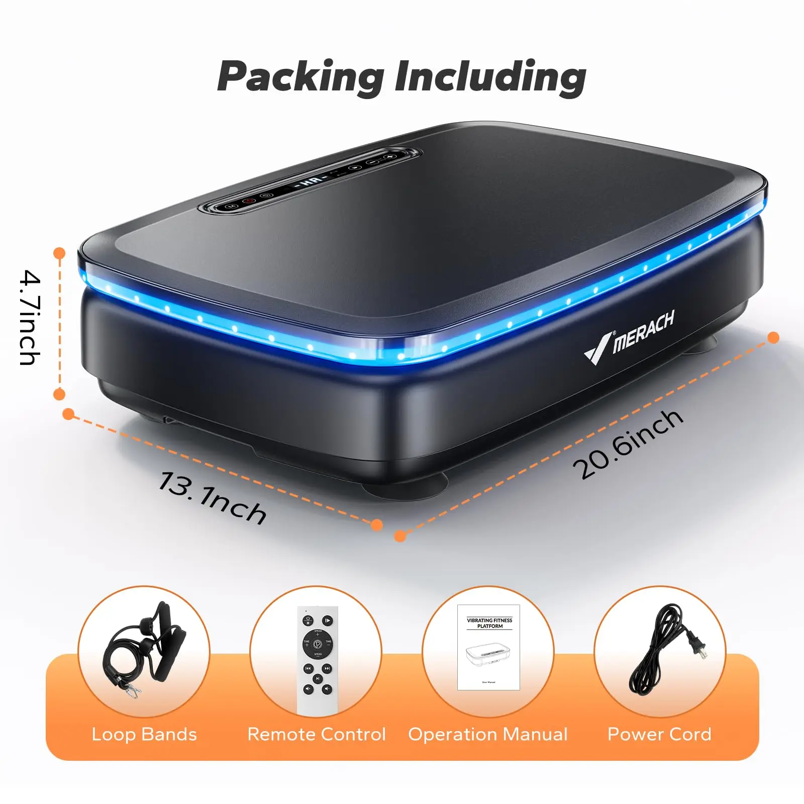MERACH Vibration Plate Exercise Machine with Light, Bluetooth,Whole Body Workout Power Vibrate Fitness Platform Vibration Plate for Lymphatic Drainage,Motor Speed Control