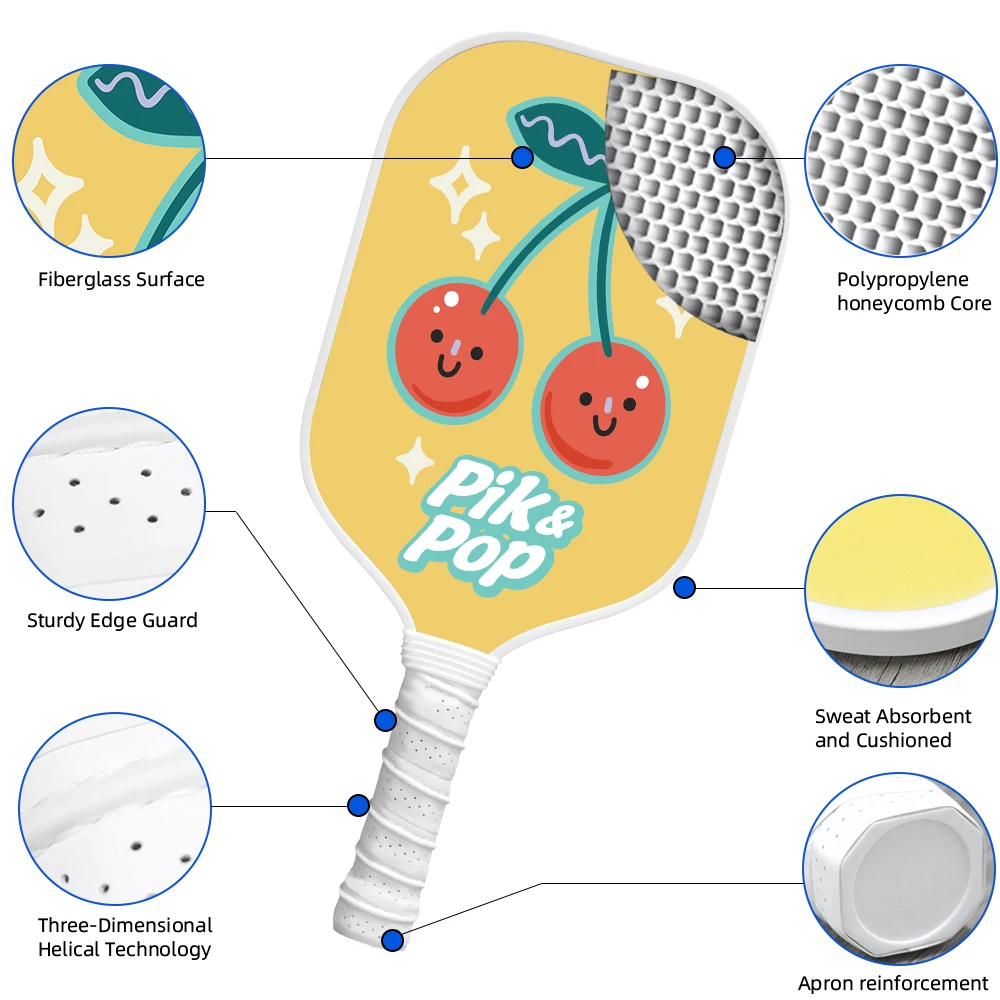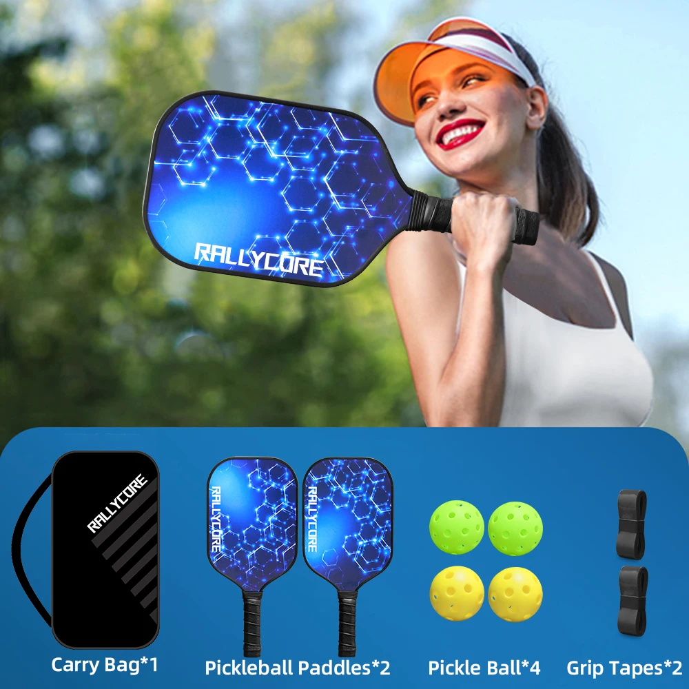 Pickleball Paddles Set of 2 with 4 Balls & Carry Bag Premium Honeycomb Core Paddles for Indoor & Outdoor Play for Adults and Youth