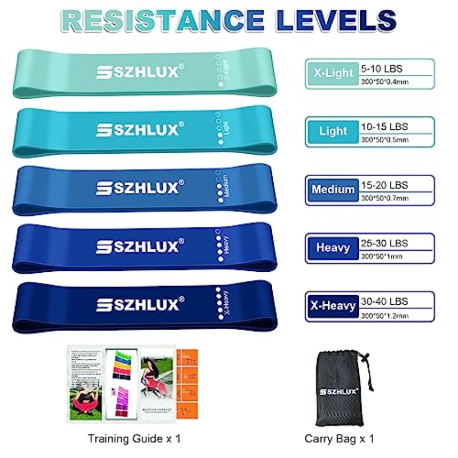 Resistance Bands Set with Instruction Guide and Carry Bag, Versatile for Strength Training, Rehabilitation-Set of 5 (Blue)