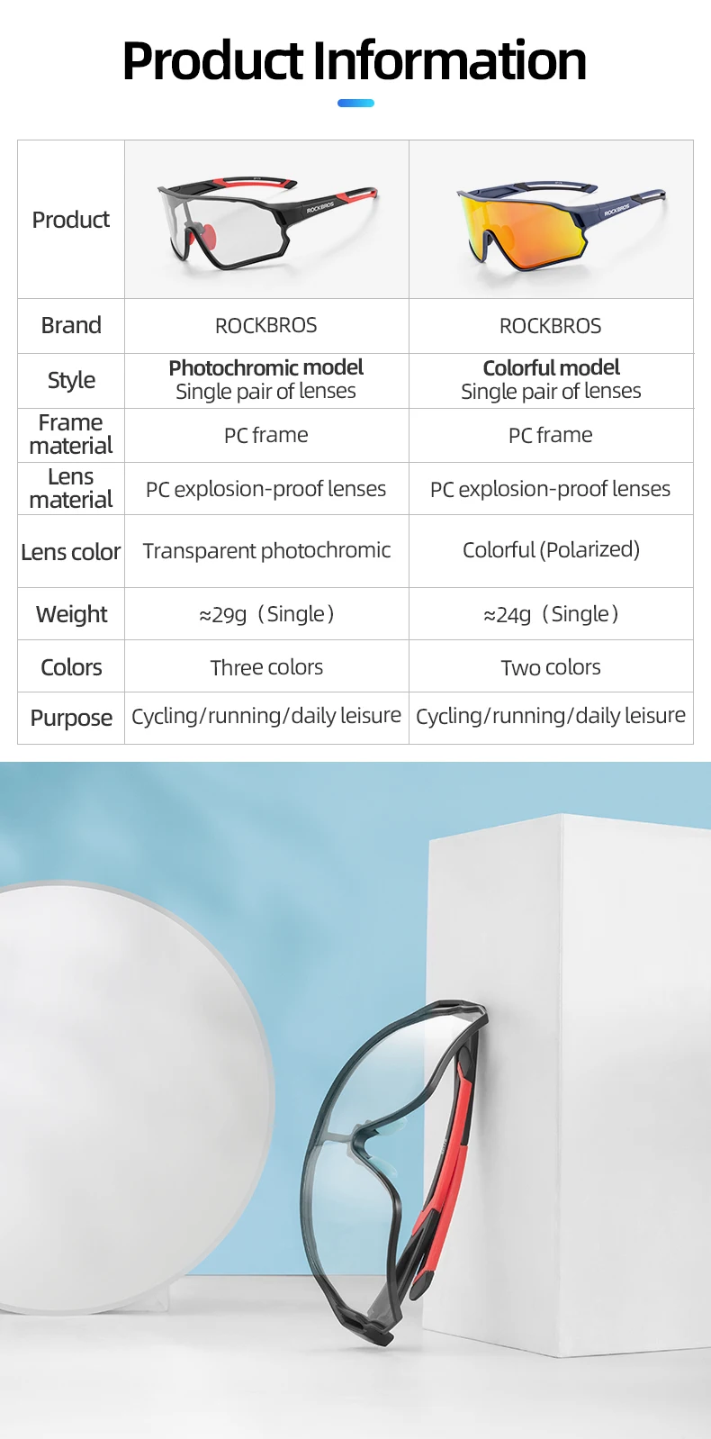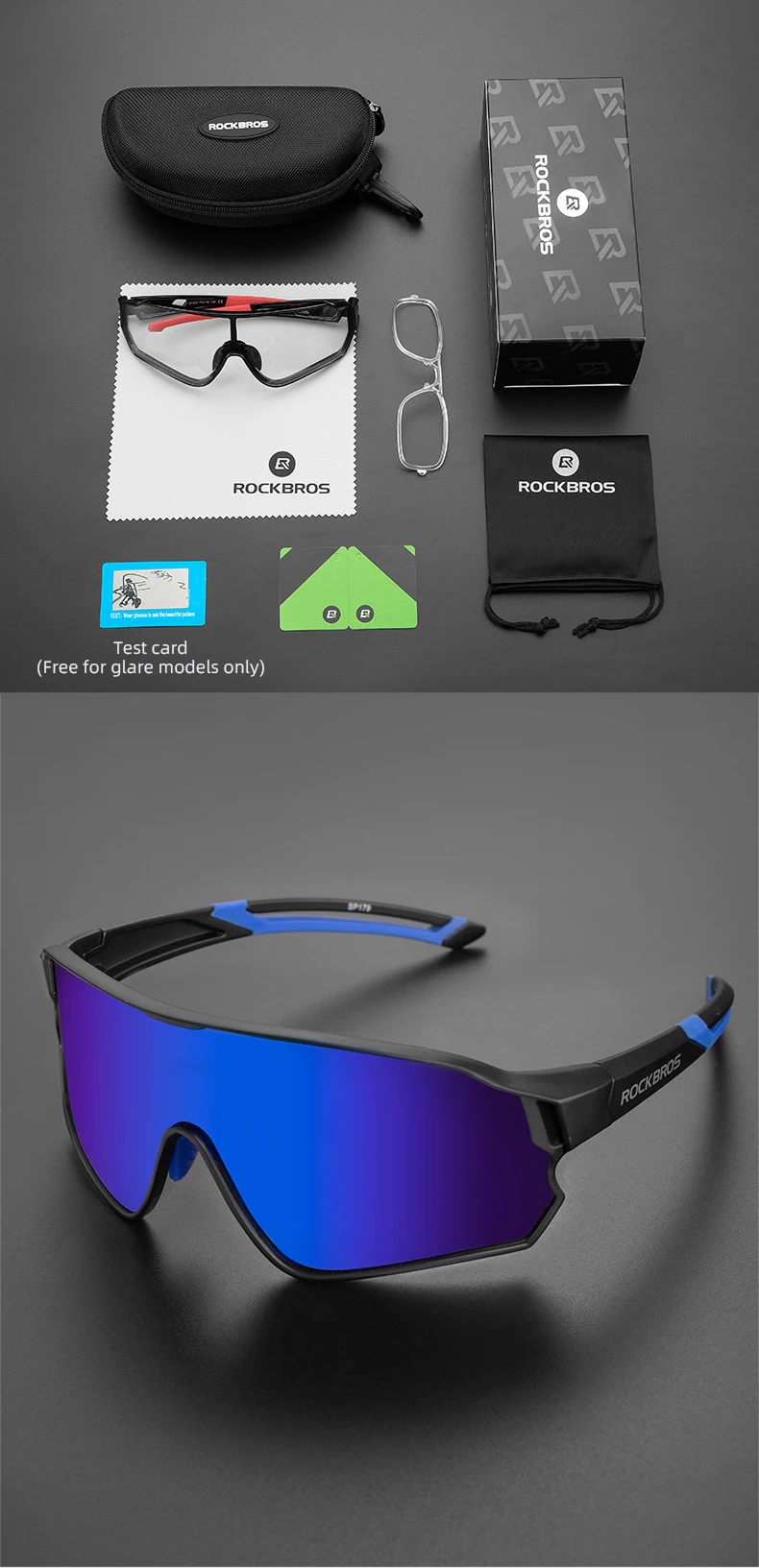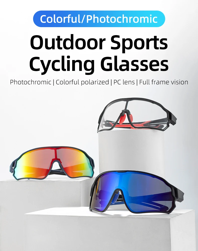 ROCKBROS Unisex Polarized Photochromic UV400 Cycling Glasses with Myopic Frames - Outdoor Wind & Sand Proof Bicycle Sports Gear