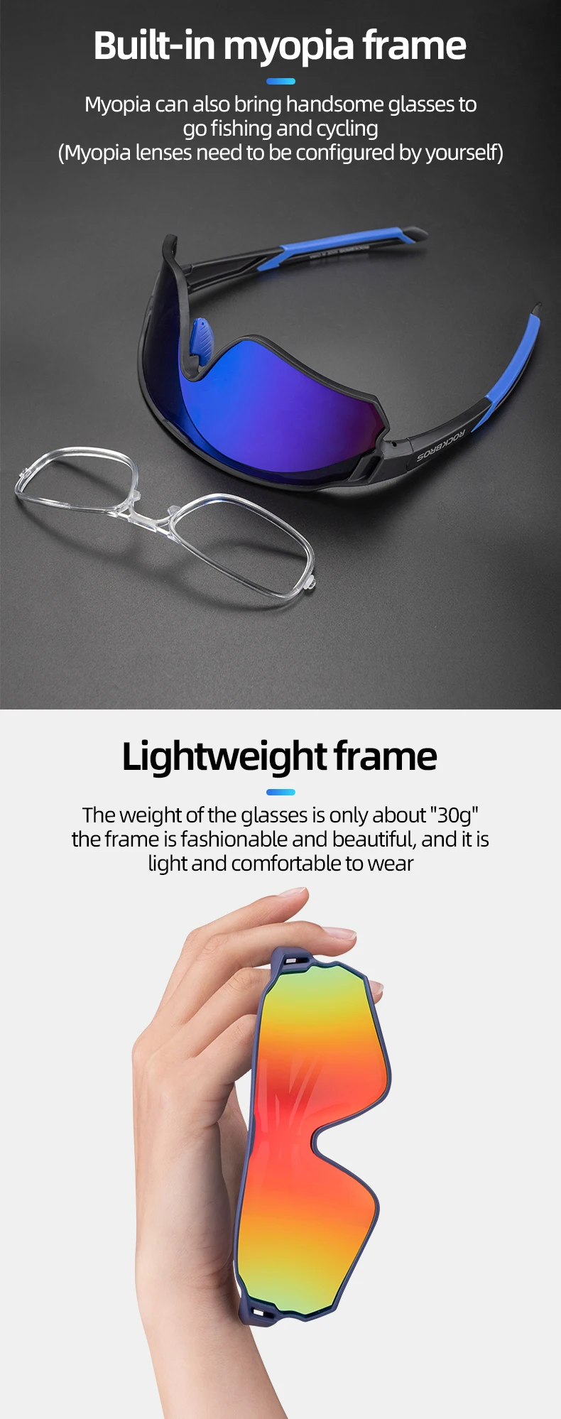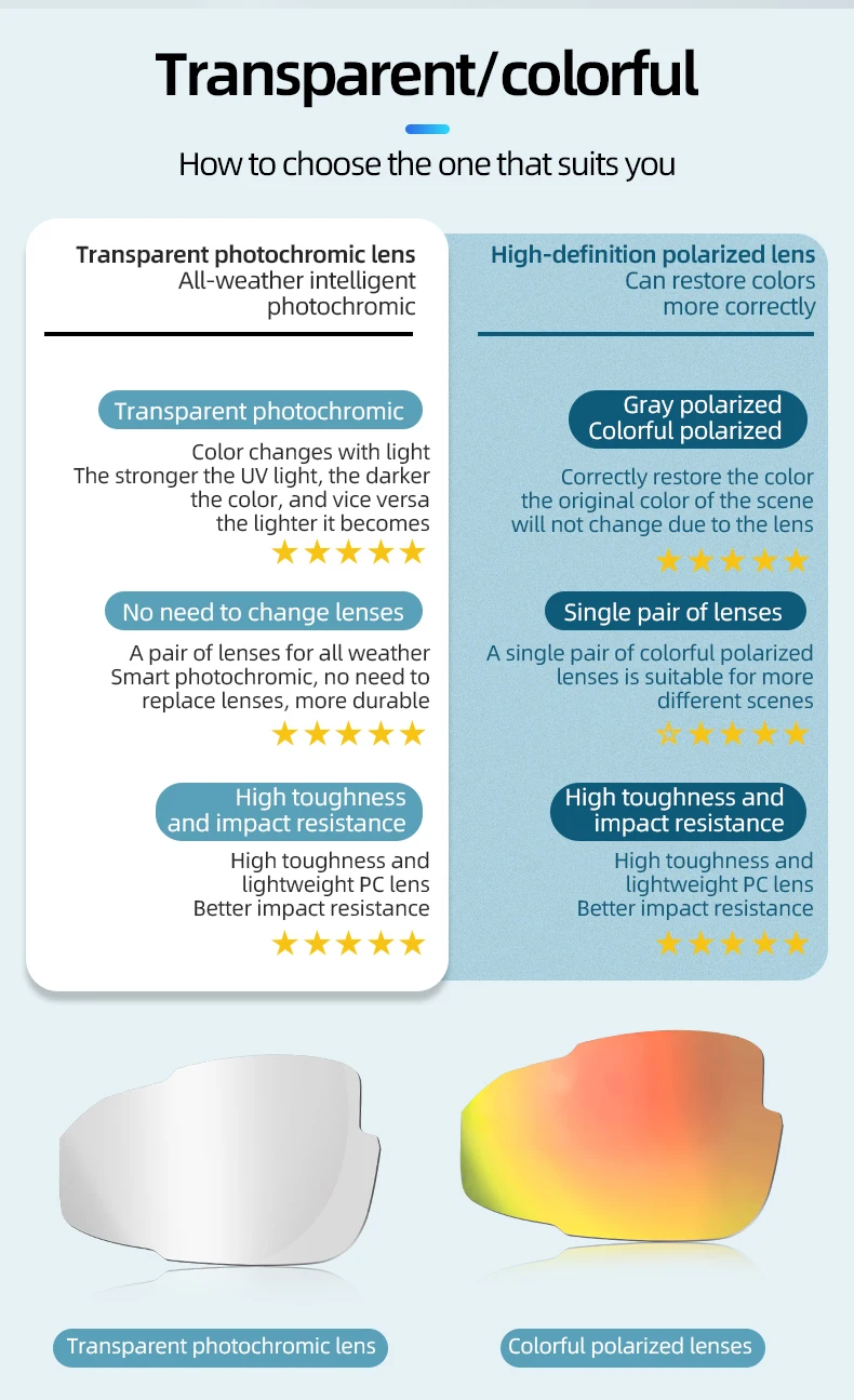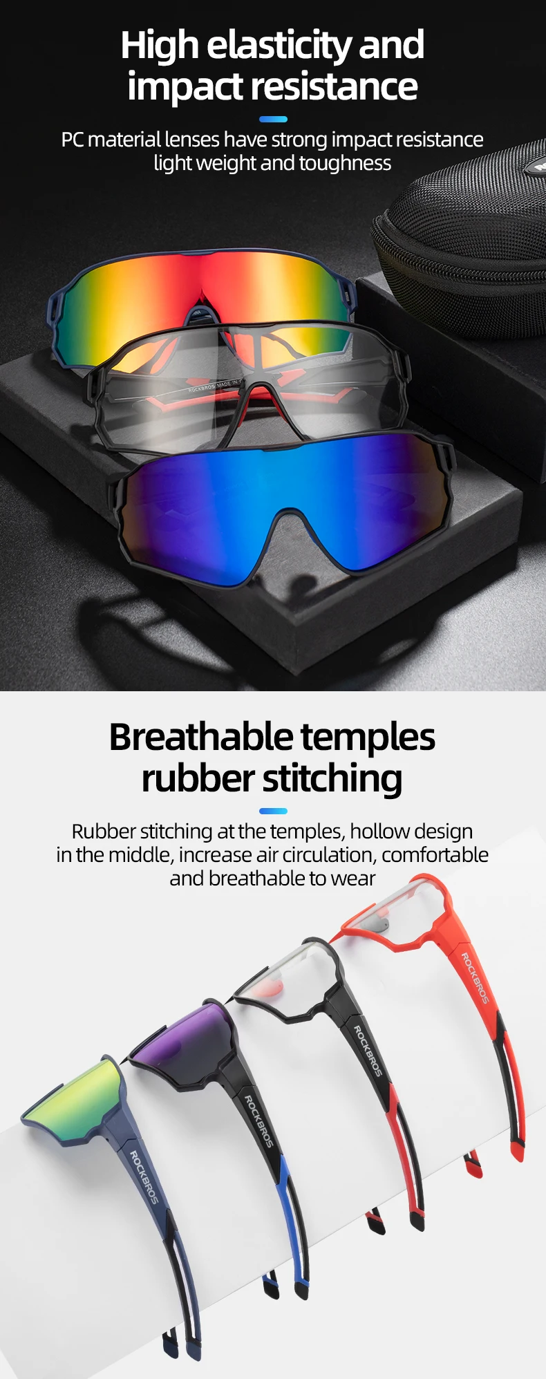 ROCKBROS Unisex Polarized Photochromic UV400 Cycling Glasses with Myopic Frames - Outdoor Wind & Sand Proof Bicycle Sports Gear