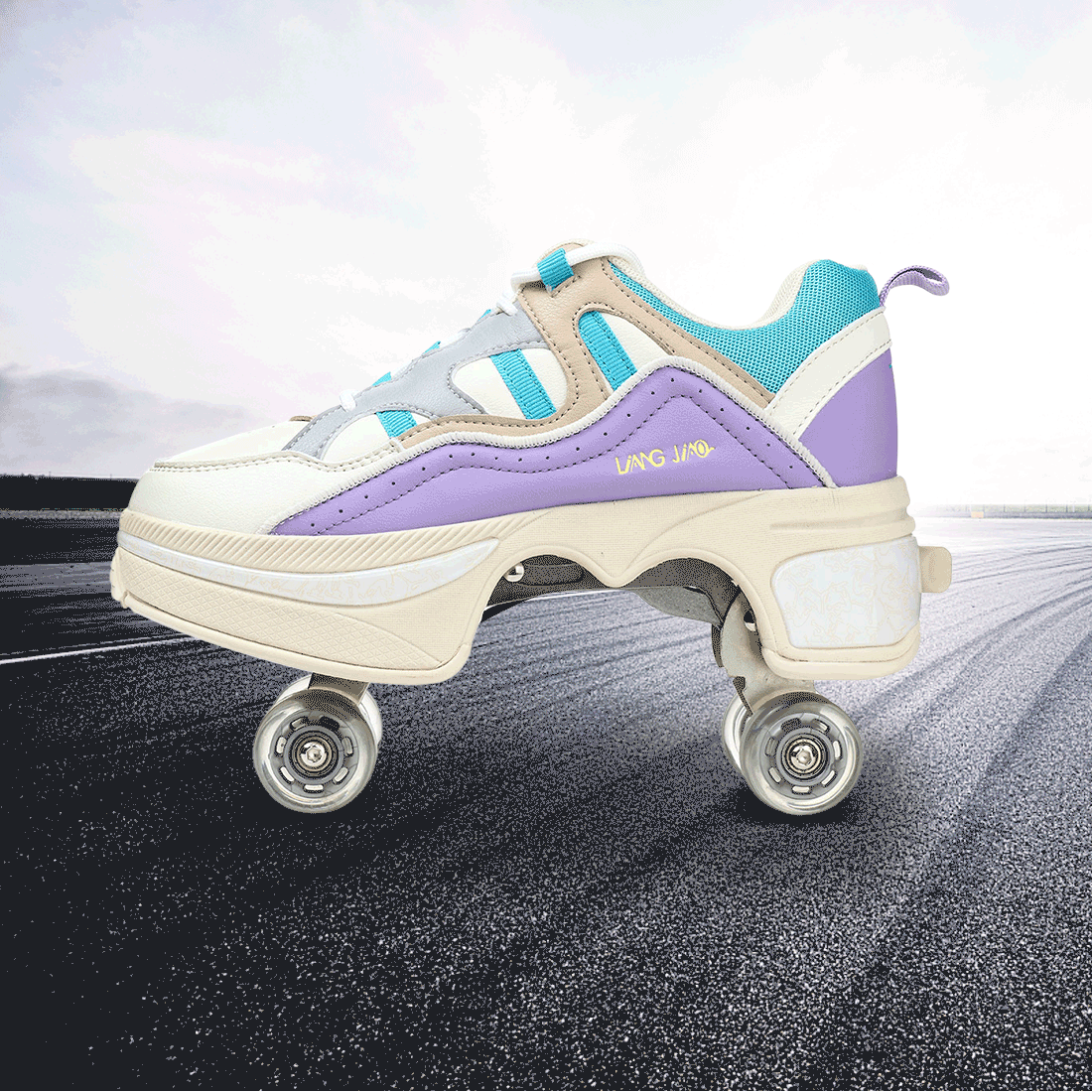 Sale!!! Big Size 40 41 Deformation Roller Skates Shoes Double Row 4-Wheel Skates Roller Shoes Dual-Purpose Roller Sneakers Shoes