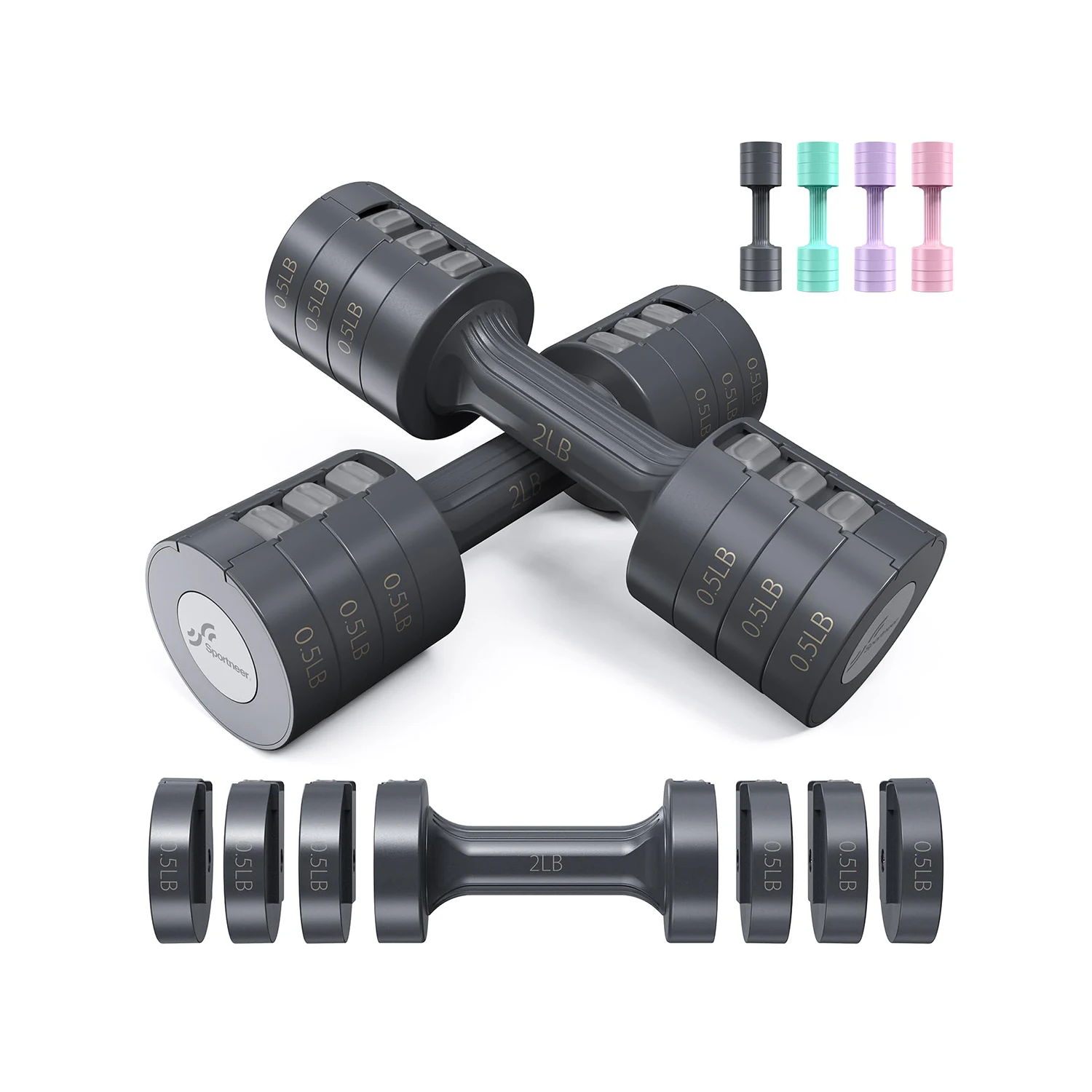 Sportneer  Adjustable Dumbbells Hand Weights Set 5 lb Dumbbells Set of 2 Each 2lb 3lb 4lb 5lb Free Weights Fast Adjust Weight 4