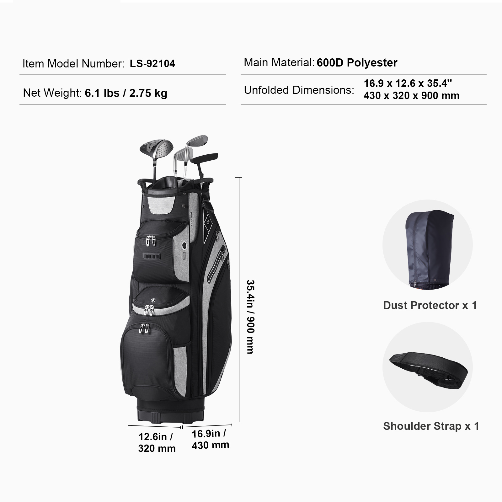 SucceBuy Golf Cart Bag w/ 14 Way Organizer Divider Top Pockets Premium Cart Bag Durable Golf Bags with Handles&Detachable Straps