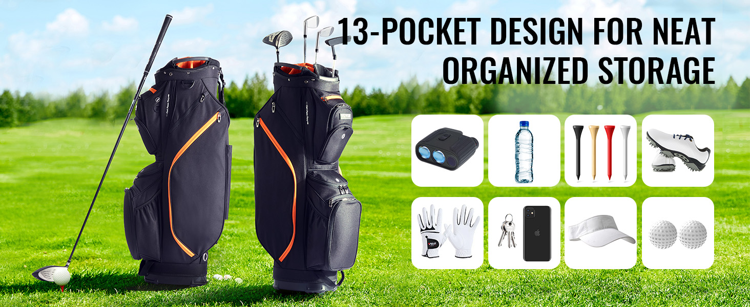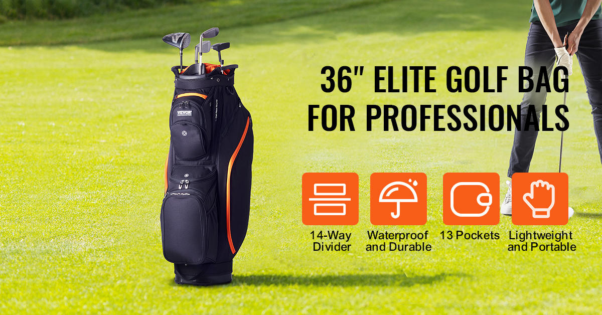 SucceBuy Golf Cart Bag with 14 Way Organizer Divider Top 36” 13 Pockets Premium Cart Bag Durable for Men & Women Black & Orange