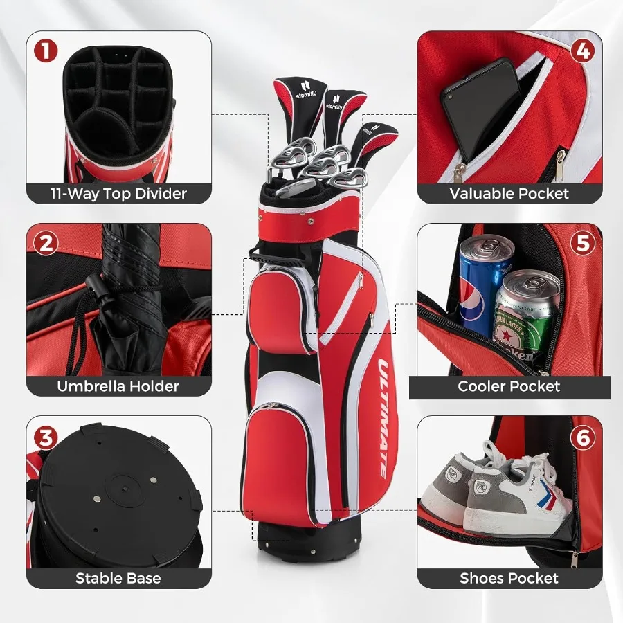 Women’s Complete Golf Club Set 9 11pcs Right Handed Ladies Golf Clubs Set with 460cc Alloy Driver 3 Fairway Wood Hybrid 6 7 8 9
